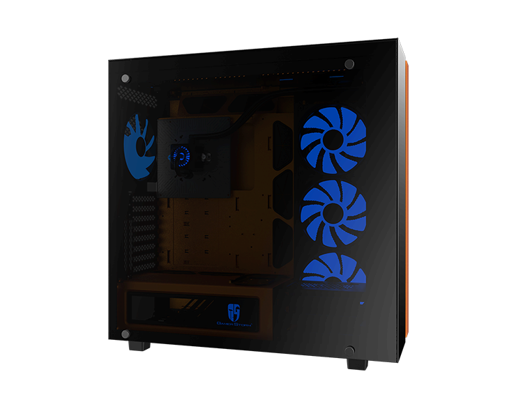 | Ventoinhas de refrigeração Support | Pré-instalada: Traseira: 1×140mm RGB fan; Side: 3×140mm RGB fan; Opcional: Topo:3×120mm fan; Pré-instalada: 3×120mm fan |