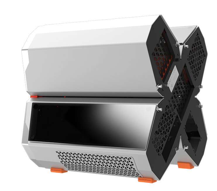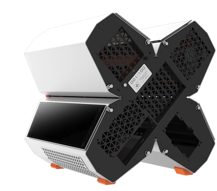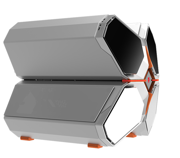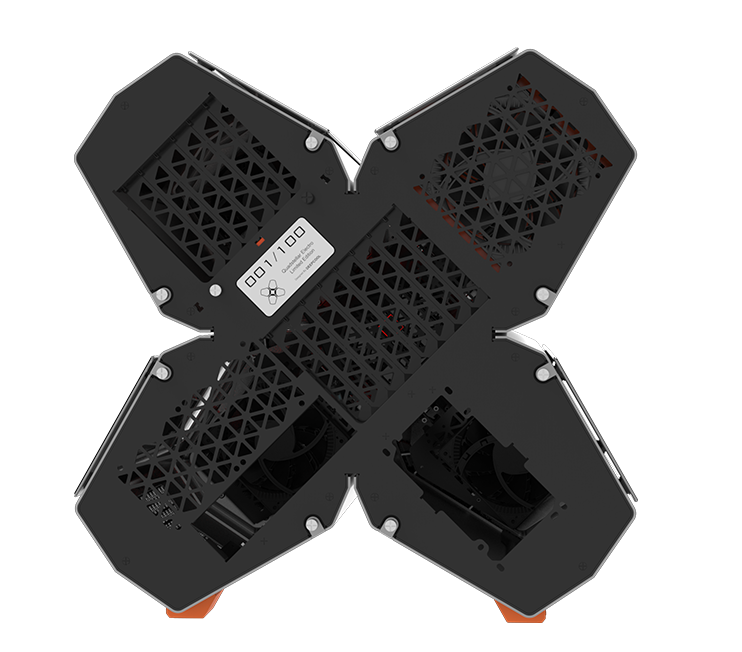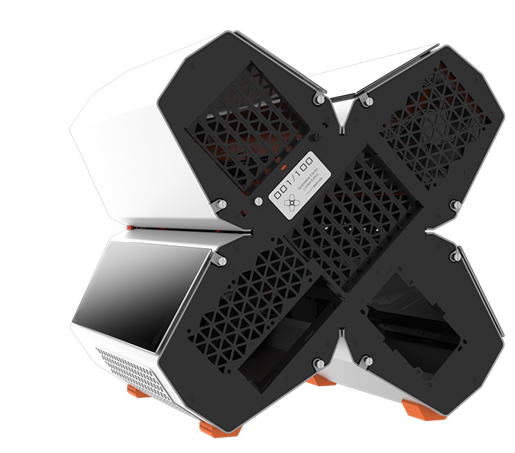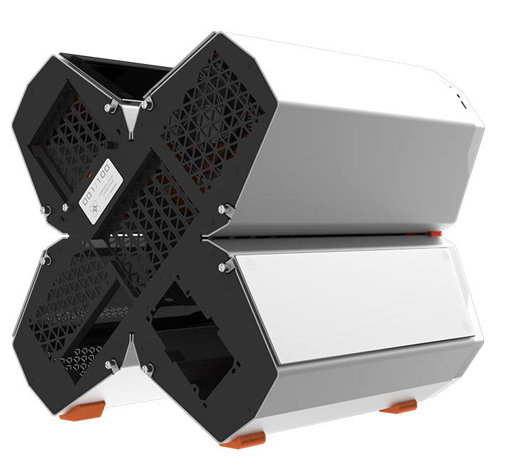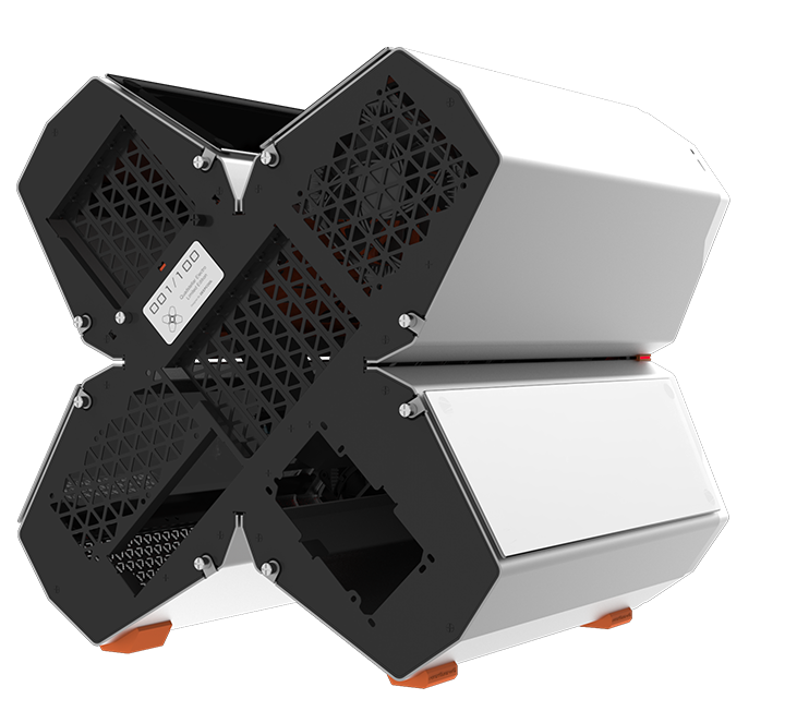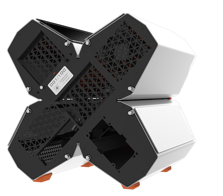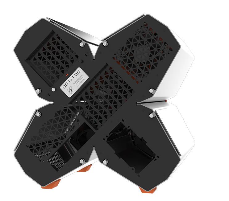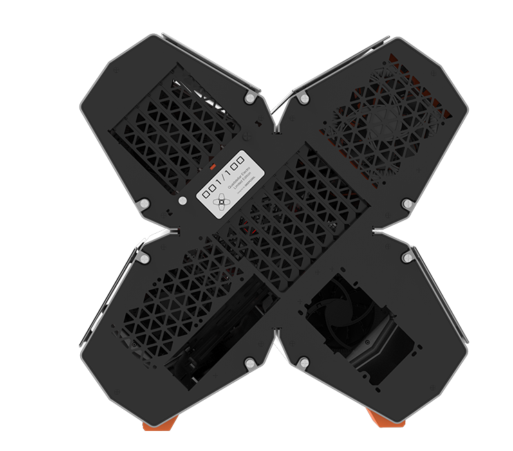 QUADSTELLAR liefert ein stylisches high-tech Gehäuse für E-ATX Mainboards, mehrere Grafikkarten, das Netzteil und Kühlkomponenten in vier unabhängigen Bereichen um Interferenzen bei der Wärmeableitung zu eliminieren und maximale Kühlleistung zu erreichen
