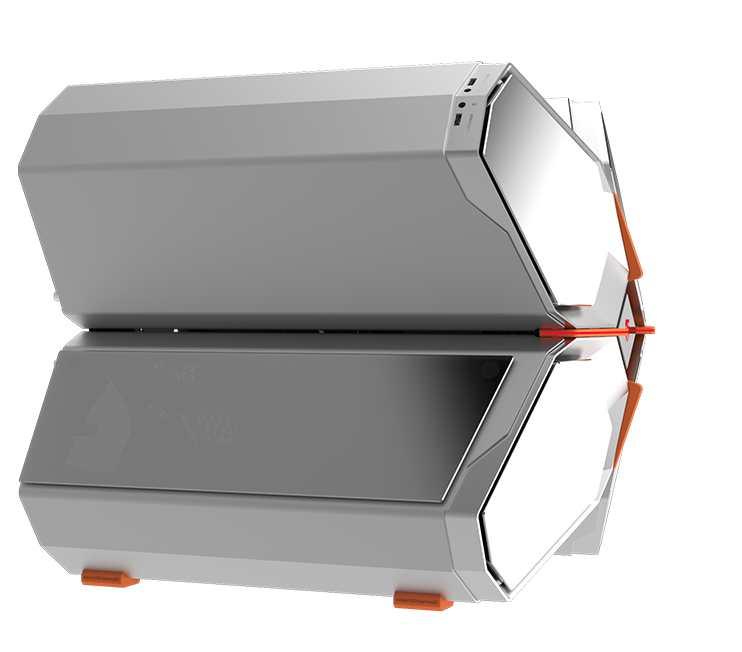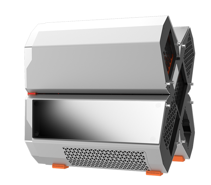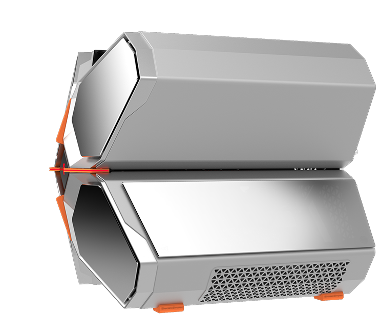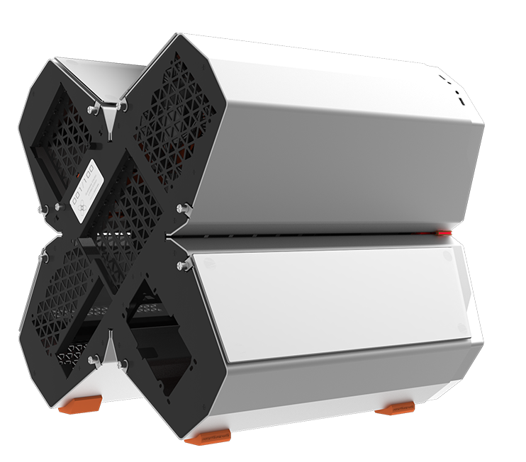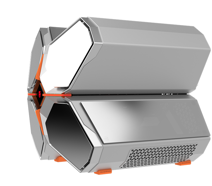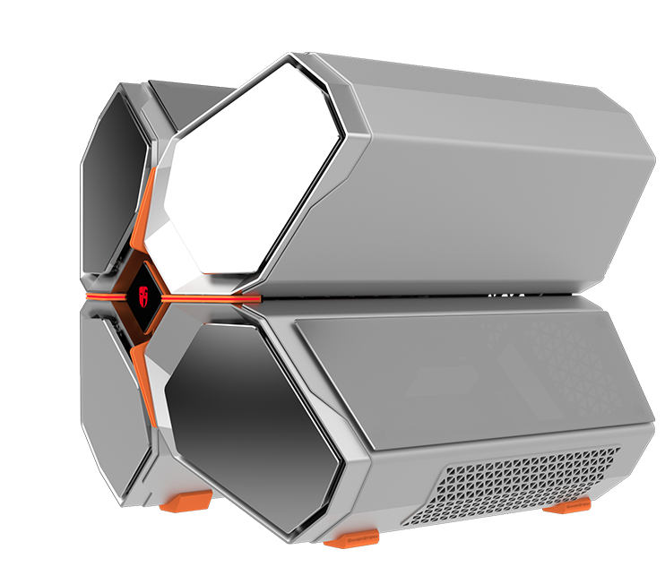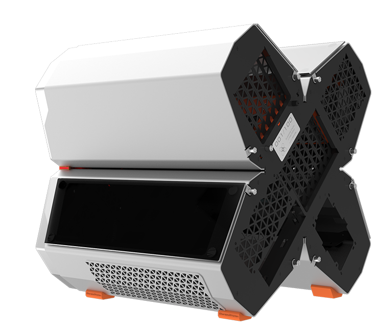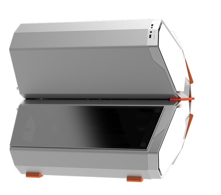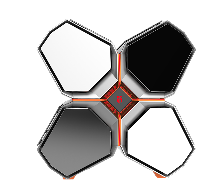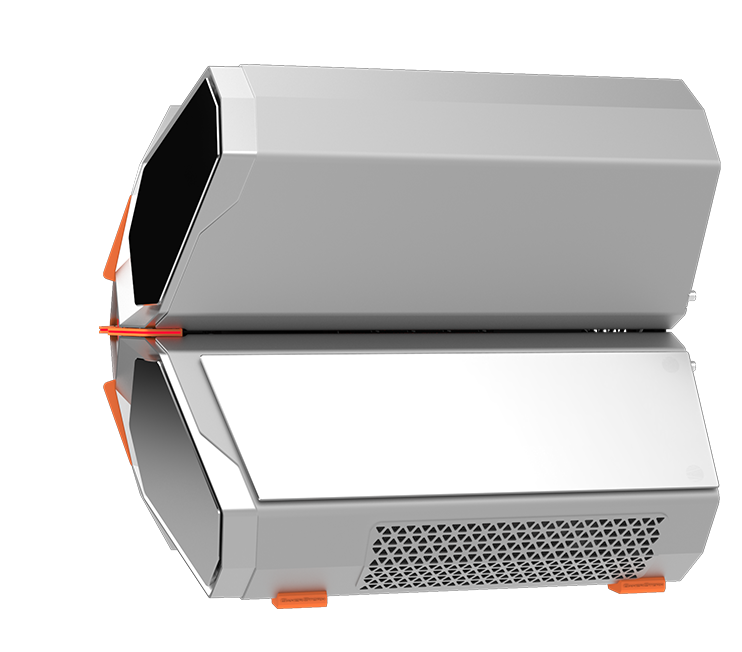 QUADSTELLAR liefert ein stylisches high-tech Gehäuse für E-ATX Mainboards, mehrere Grafikkarten, das Netzteil und Kühlkomponenten in vier unabhängigen Bereichen um Interferenzen bei der Wärmeableitung zu eliminieren und maximale Kühlleistung zu erreichen
