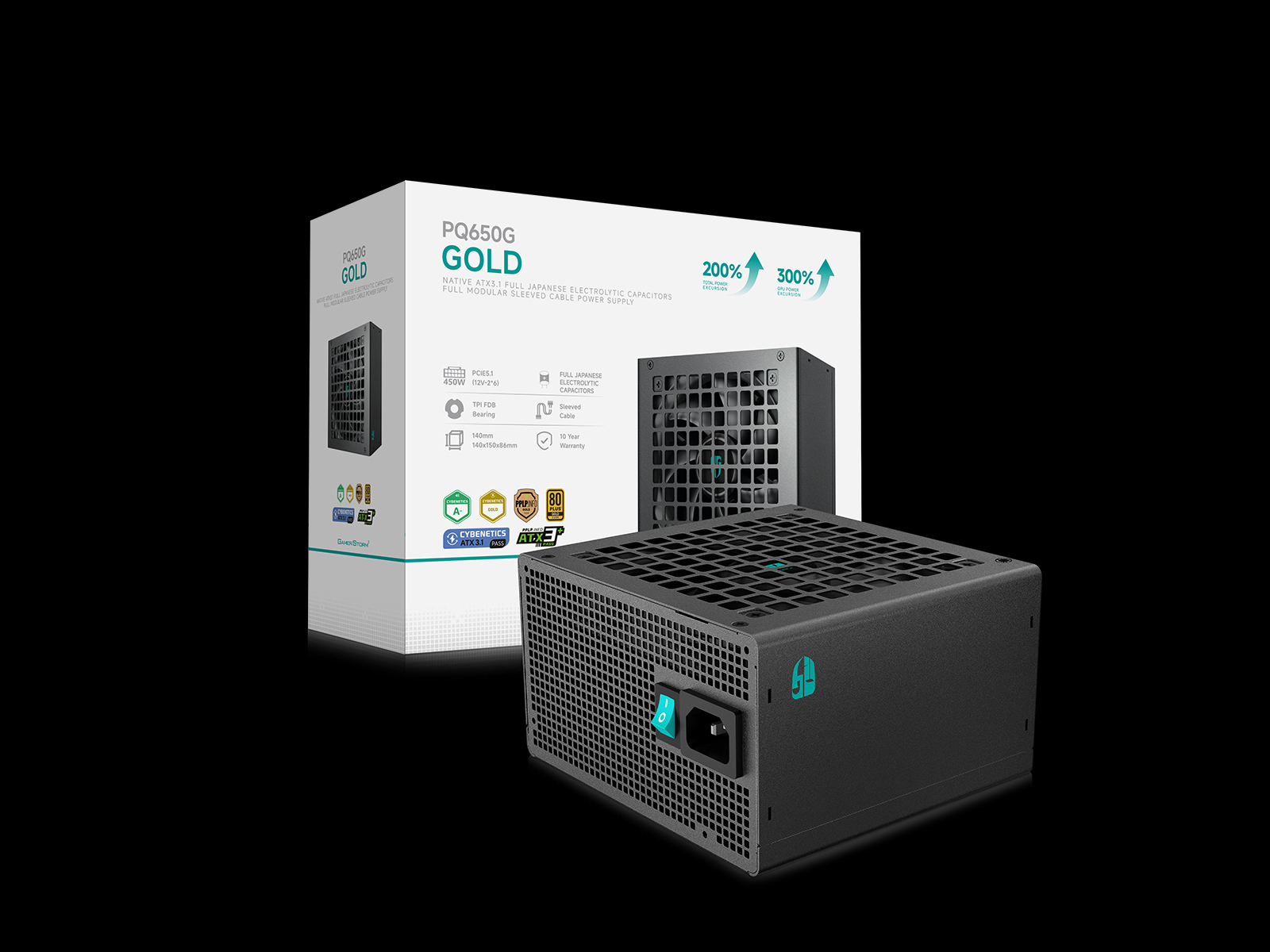 Этот блок питания способен обеспечить двукратный объем общей мощности системы, в 2,5 раза больше пиковой мощности по сертификации CEM 12 В и в 3 раза больше номинальной мощности кабеля 12 В-2x6 в течение 0,1 мс, поэтому случайные скачки мощности больше не вызовут проблем. PQ650G будет обеспечивать в обозримом будущем стабильное и устойчивое питание для устаревших ПК и современных мощных систем.
